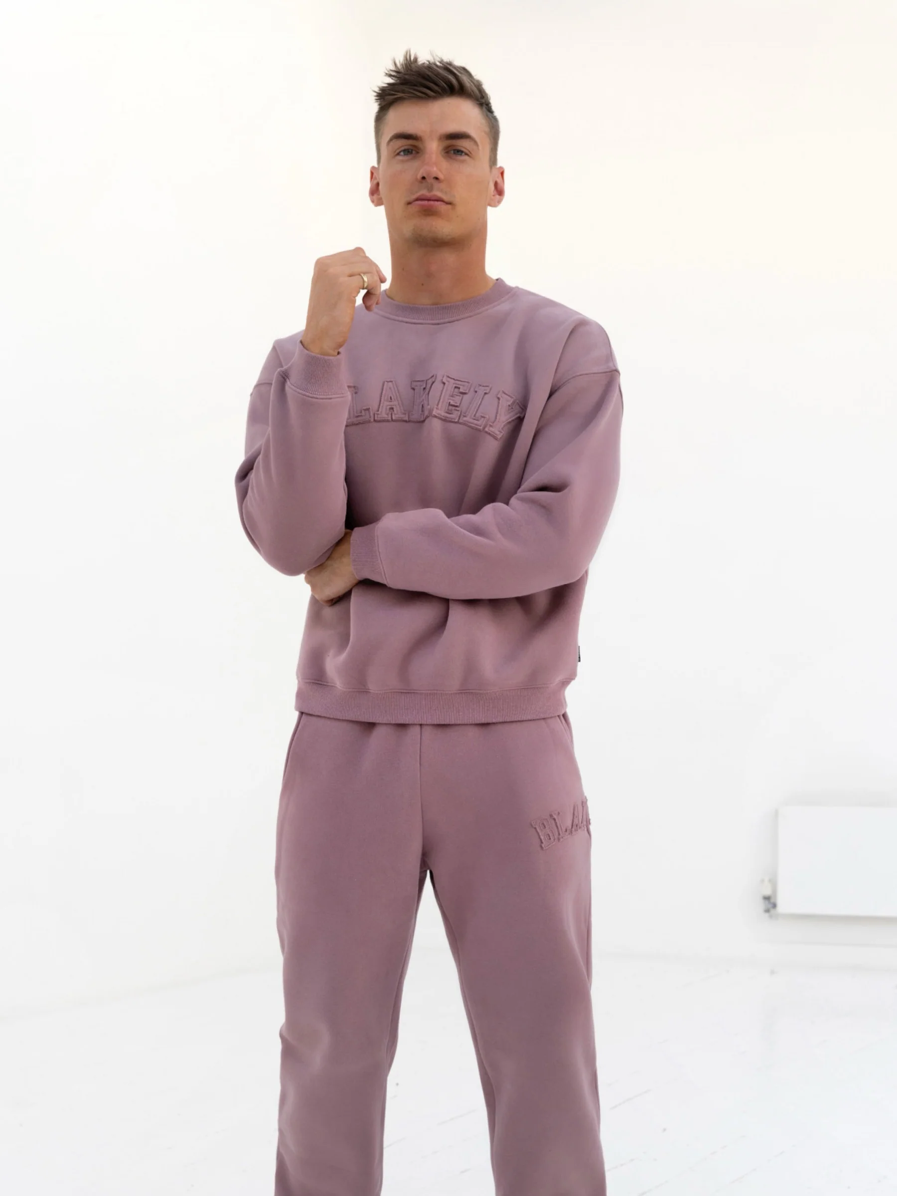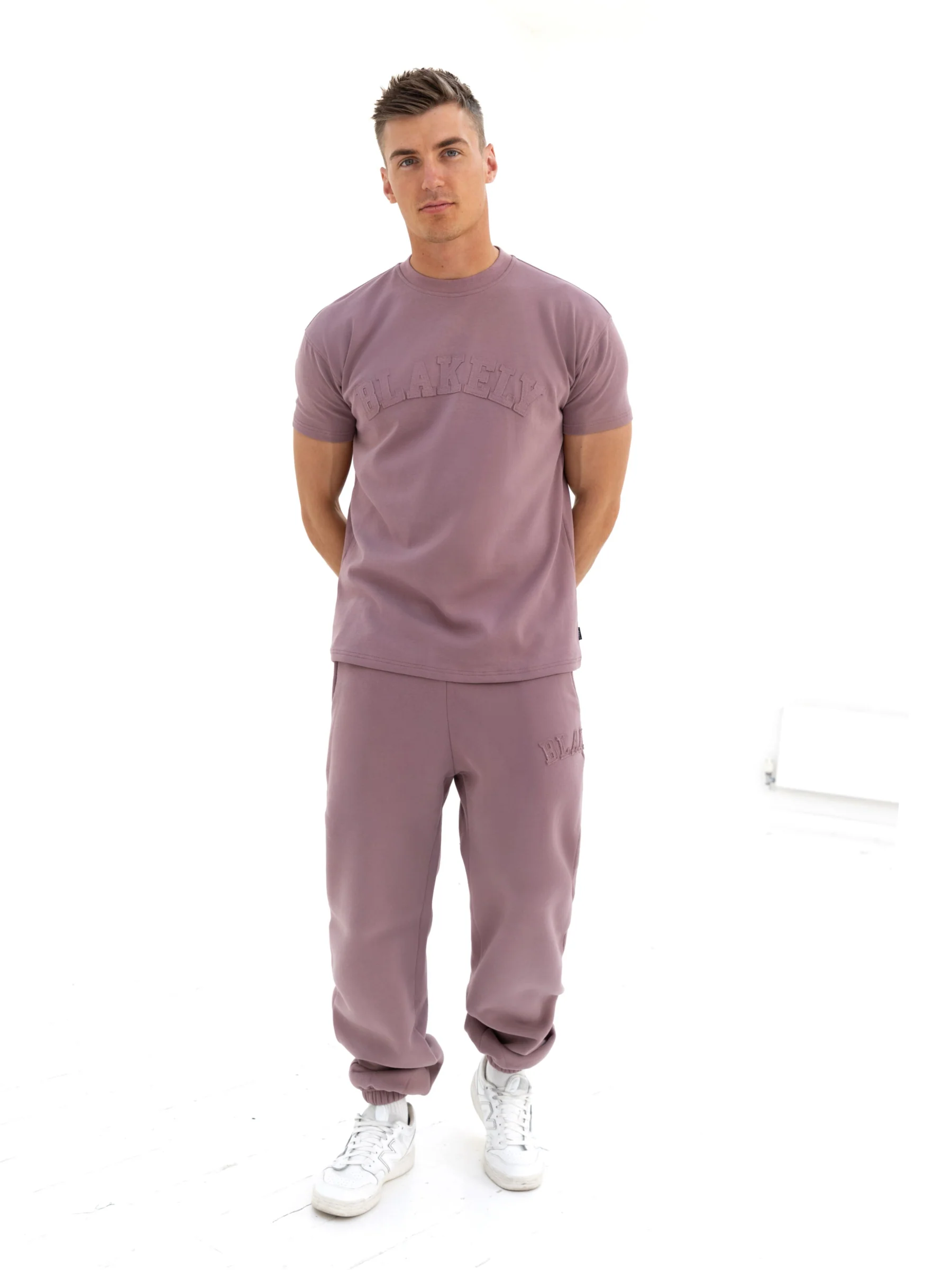 Tonal Varsity Relaxed Sweatpants - Soft Mauve