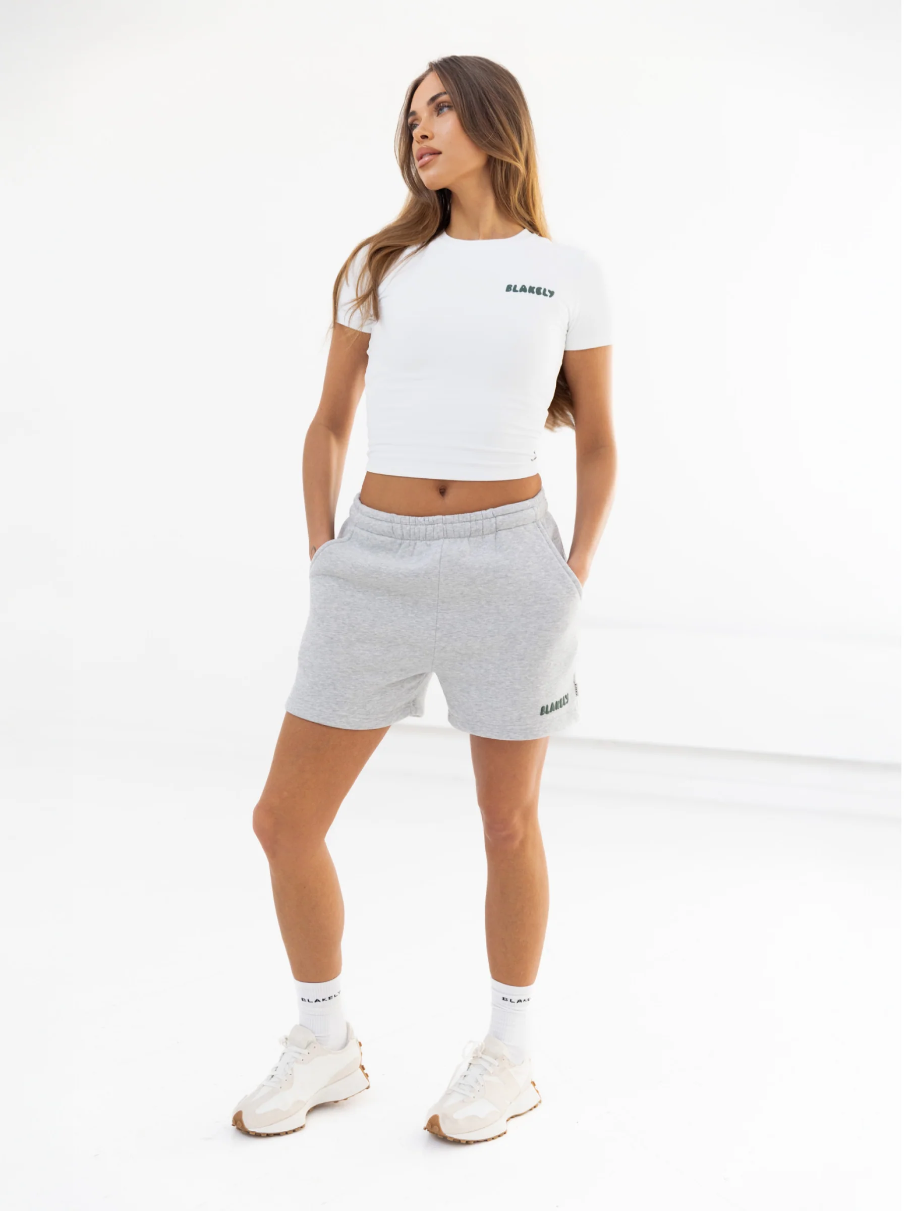 Cloud Crop Top & Jogger Shorts Set - Forest Green & Marl Grey