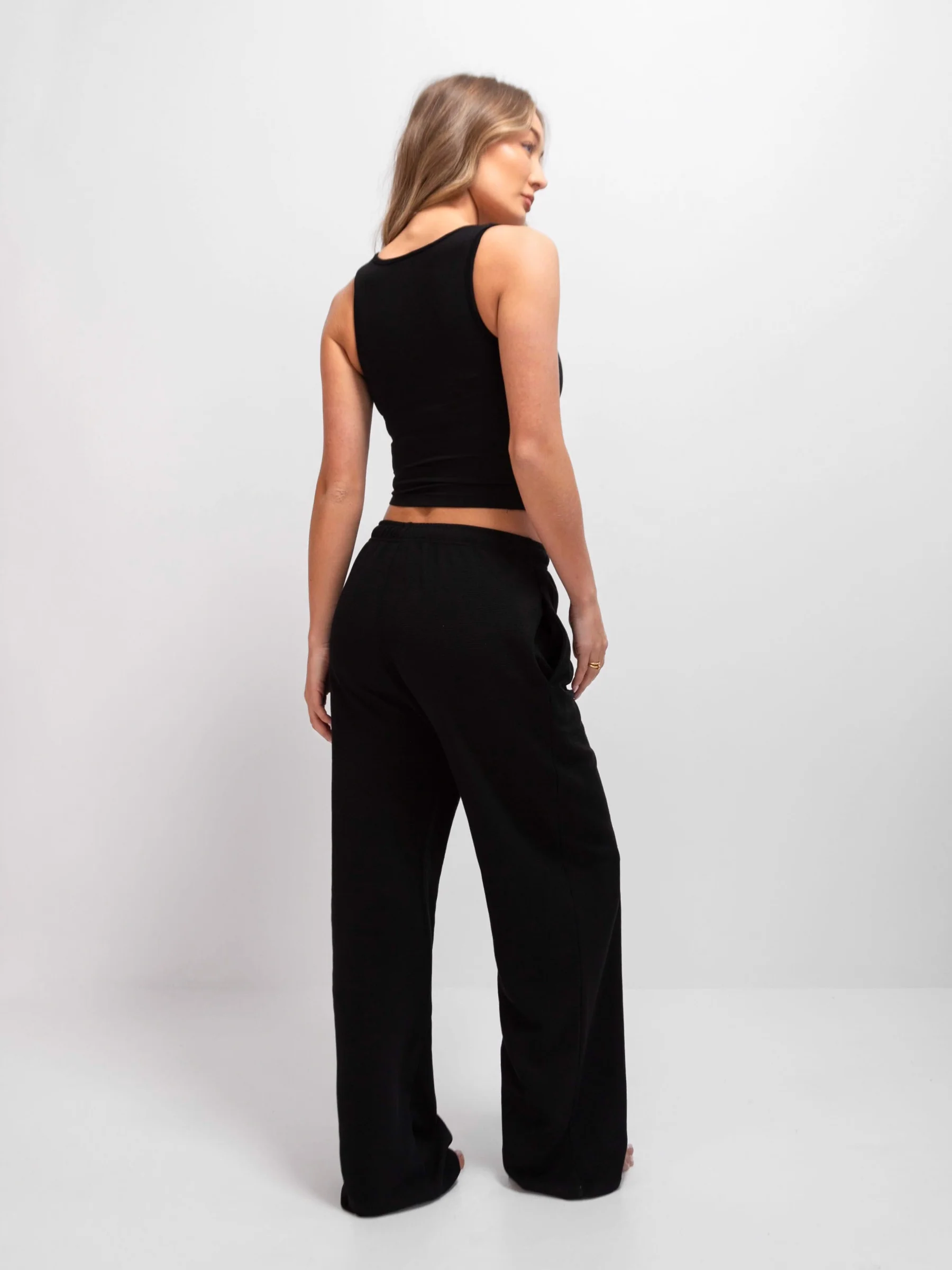 Soft Waffle Vest Top - Black